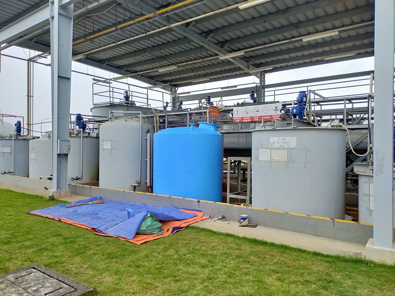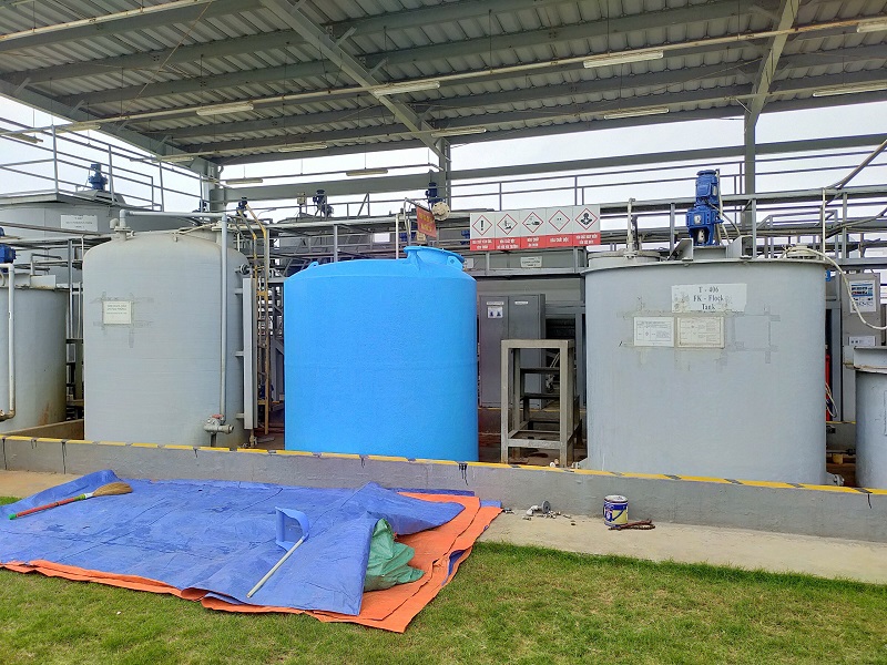 Cung cấp Bể Chứa Hóa Chất thể tích 5m3. Chứa hóa chất NaOH 32%. Tháo dỡ bể cũ, bọc phủ FRP cho sàn nơi vị trí đặt bể. Cẩu hạ bể & lắp đặt đường ống